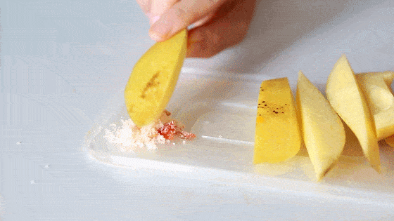 呈现娇艳外皮的红玉芒看起来格外甜蜜,它的果形也是偏大,肉厚汁多,将其划个十字花刀吃起来也很方便。