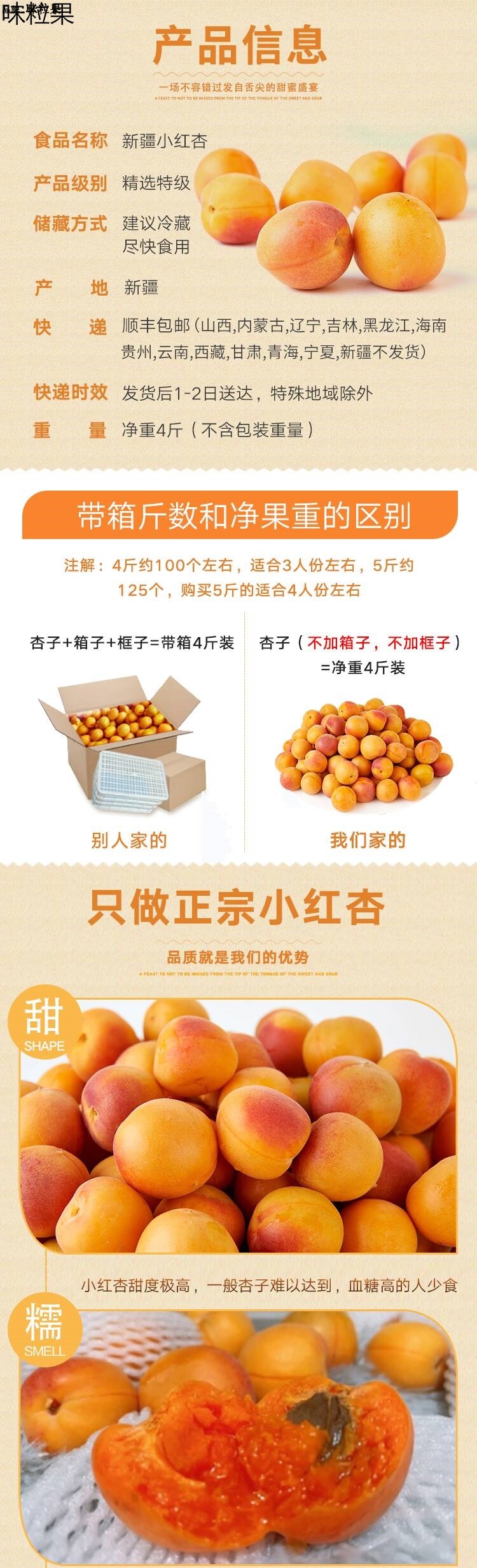 新疆小红杏新鲜水果吊干杏鲜杏当季整箱甜伊犁吊杆杏杏子胜小白杏4斤