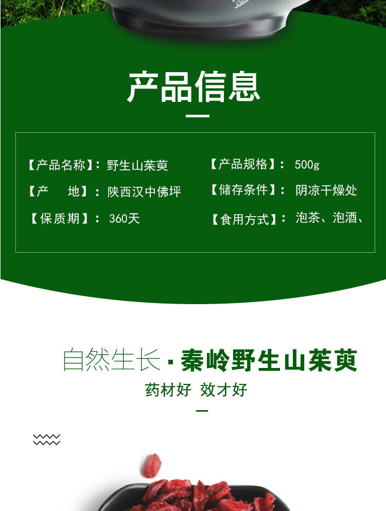 新货秦岭野生山茱萸 无核无硫山茱萸肉枣皮500克中药材滋补泡酒